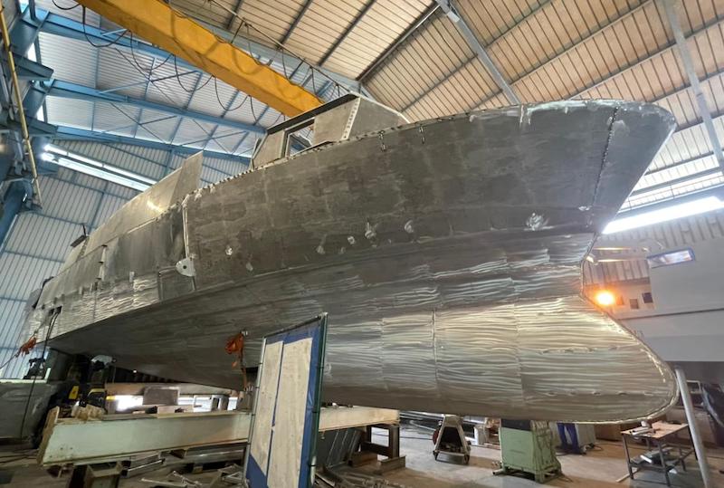 Tahiti, le 24 janvier 2022 – Une délégation menée par le maire de Moorea-Maiao, Evans Haumani, a visité le chantier naval de Taravao afin de voir l'avancée des travaux de construction de la future navette de la commune. Elle sera livrée en mai et permettra de mieux assurer les liaisons maritimes entre Moorea et Maiao, distantes de 75 km.