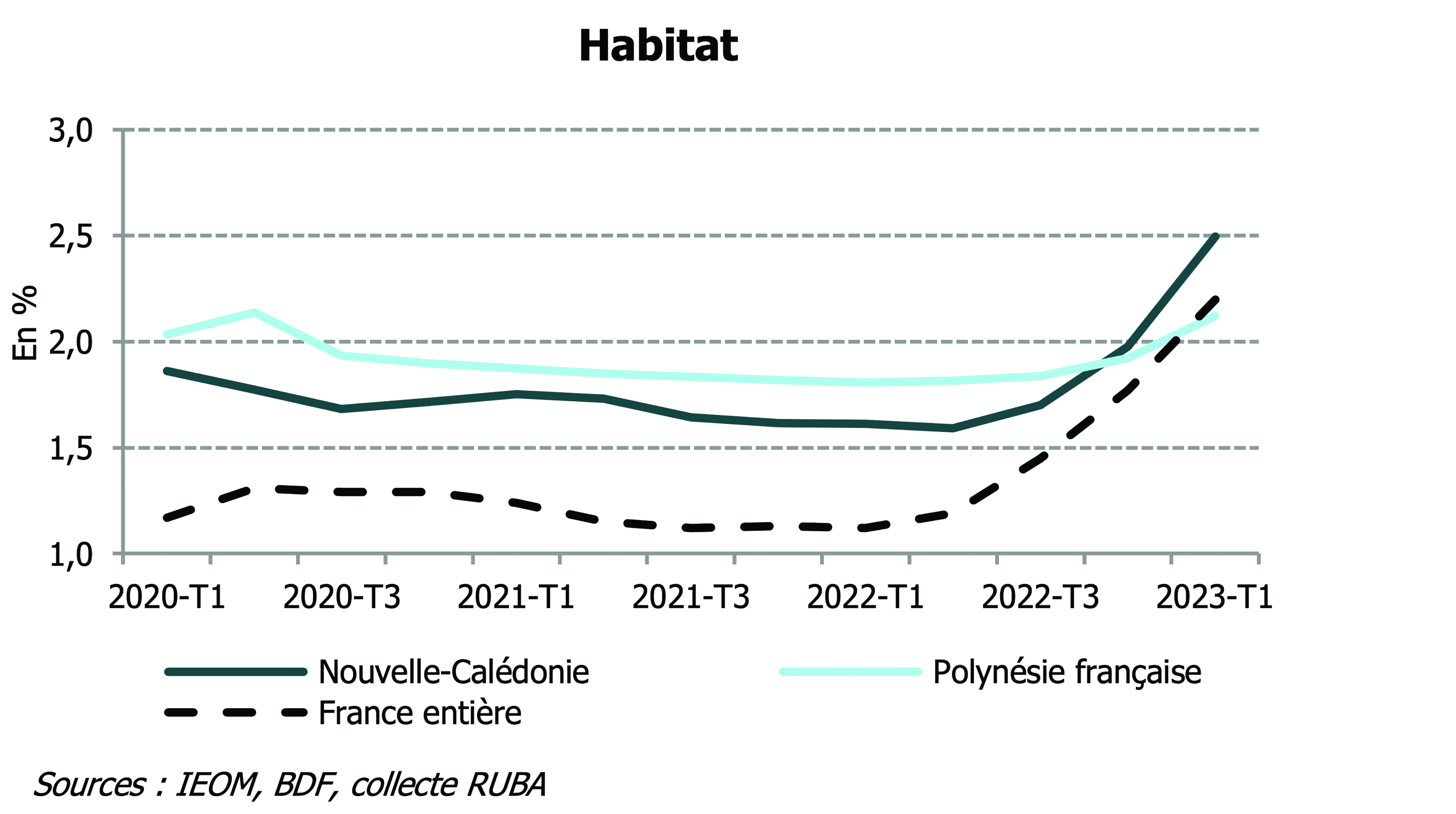 Plus encore, le taux moyen des crédits immobiliers augmente passant de 1,77 % à 2,56 %. "Malgré une tendance à la hausse, les conditions débitrices observées en Polynésie française s’avèrent plus favorables qu’en Nouvelle-Calédonie et que dans la France entière où les augmentations sont plus marquées", note cependant l'IEOM.