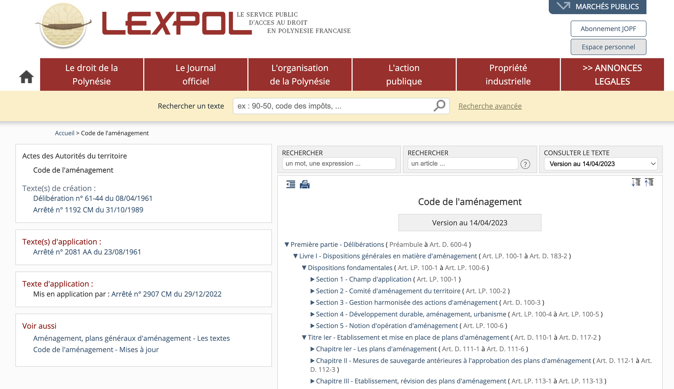 Le code de l’aménagement de Polynésie française est désormais accessible en ligne sur le site Lexpol numérique, dans une version mise à jour en temps réel, offrant un accès immédiat à la version en vigueur.