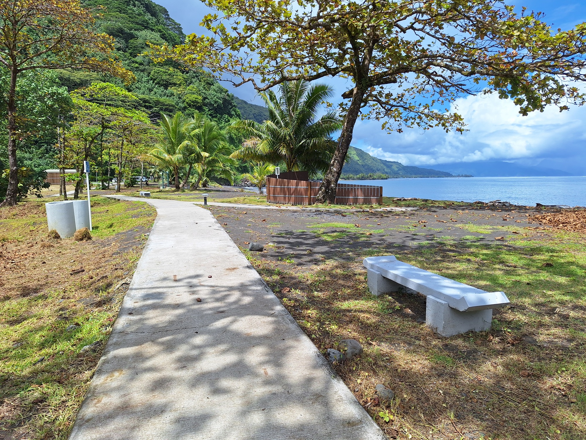 Le parc Teafa – du nom de la passe voisine – cumule pourtant les améliorations, avec un espace de détente de 30 000 m2 offrant un double accès à la mer et à la rivière. Le site dispose désormais de sanitaires et de douches extérieures, mais également de nombreux bancs, tables et poubelles de part et d’autre d’un cheminement piéton, accessible aux personnes à mobilité réduite (PMR). Un parvis a été aménagé pour les pêcheurs et le stationnement est facilité par une cinquantaine de places de parking. On se souvient qu’auparavant, la descente était périlleuse pour les plus petits véhicules. Des palissades en bois permettent d’intégrer l’ensemble au cadre naturel préservé. L’opération s’élève à 252 millions de francs, avec une participation de l’État à hauteur de 90 millions dans le cadre du Contrat de développement et de transformation (CDT).
