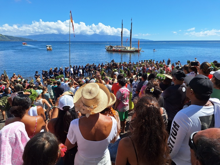 Anthony Jamet, maire de Taiarapu-Est : “Il est indéniable de dire que l’expérience de Hōkūle’a a marqué un tournant culturel majeur pour l’ensemble des peuples polynésiens. (...) Ces techniques impliquent la lecture des étoiles, des vagues, des oiseaux, des éléments. Au-delà de ce concept, il en existe un autre, indissociable de la vie d’un ihitai ou d’un marin, celui qui nous réunit aujourd’hui. Ce concept est celui de la dimension humaine, reliée à la solidarité des peuples des îles.”