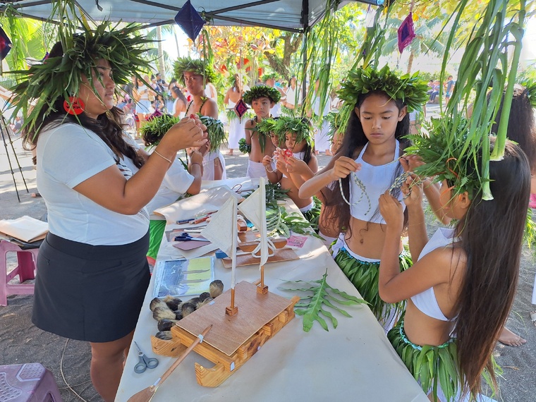 Les familles ont également pu profiter d’ateliers culturels et créatifs. “Pour rester sur le thème de l’amour et la protection de la mer, on explique aux enfants comment on fait des nœuds marins, on les initie à la peinture avec des fleurs de fara, on construit la maquette d’une pirogue et on leur propose aussi de la peinture sur tissu. C’est une façon de rendre la navigation accessible à tous”, remarque Hinatea Lefay, ex-présidente de Faafaite, originaire de Tautira.