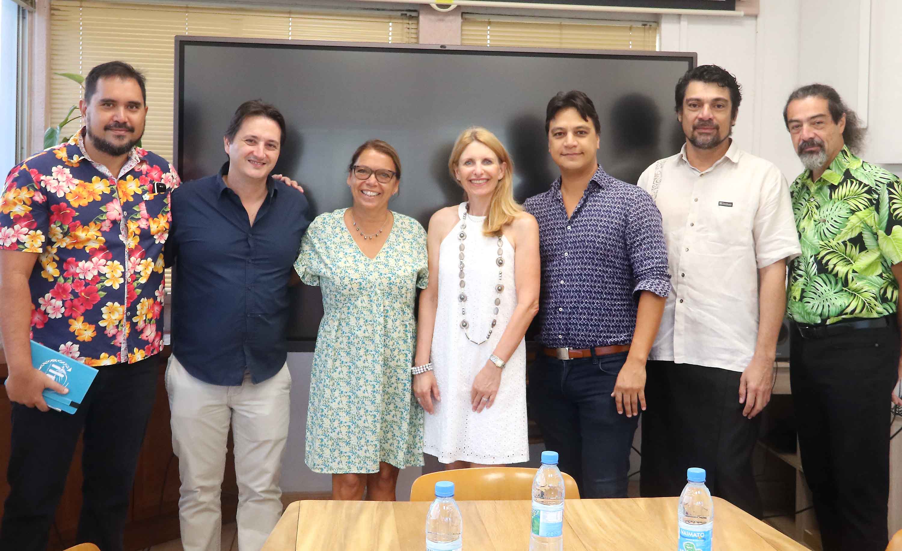 Vendredi 11 août, le ministre de l’Economie, du Budget et des Finances, Tevaiti Pomare, le ministre de la Santé, Cédric Mercadal, et le ministre de l’Agriculture et des Ressources marines, Taivini Teai, ont reçu Valérie Lorentz-Poinsot, directrice générale des laboratoires Boiron accompagnée de Valérie Caillens, pharmacienne responsable de la zone pacifique au ministère de la Santé.