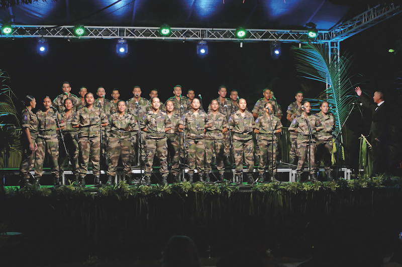 Tahiti, le 8 mai 2023 – Les Chœurs du RSMA, composés d’une trentaine de volontaires du régiment du service militaire adapté, ont donné pour la première fois un concert, vendredi soir, au Tahiti by Pearl Resorts de Arue.