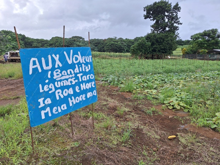 Quand les agriculteurs affichent leur colère sur des pancartes, ce n’est généralement pas bon signe. Dans son exploitation de 5 hectares à Taravao, Mitu Mou cultive toutes sortes de légumes qu’il écoule au marché de Papeete et auprès d’une grande enseigne de Punaauia. Situé en bord de route, son fa’a’apu est régulièrement pris pour cible par des voleurs, ce qui a récemment poussé l’agriculteur à planter un message d’avertissement à l’entrée.