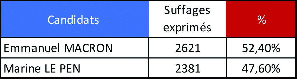 Tahiti, le 24 avril 2022 – Les reports de voix entre le premier et le second tour bénéficient principalement à Marine Le Pen dans la commune de Moorea-Maiao. La candidate Rassemblement National (47,6%) gagne près de 30 points dans l’entre-deux-tours sur l’île sœur pour finir à moins de 5 points derrière Emmanuel Macron (52,4%), samedi. Une progression à mettre dans un contexte où 38,9% des 13 638 électeurs ont voté au second tour de la présidentielle, alors que le taux de participation avait plafonné à 25,9% au premier tour. S’il avait largement dominé samedi 9 avril avec 41,7% des suffrages, Emmanuel Macron achève le second tour, dans la commune, talonné par la candidate RN.