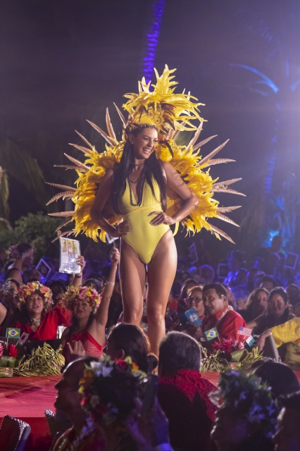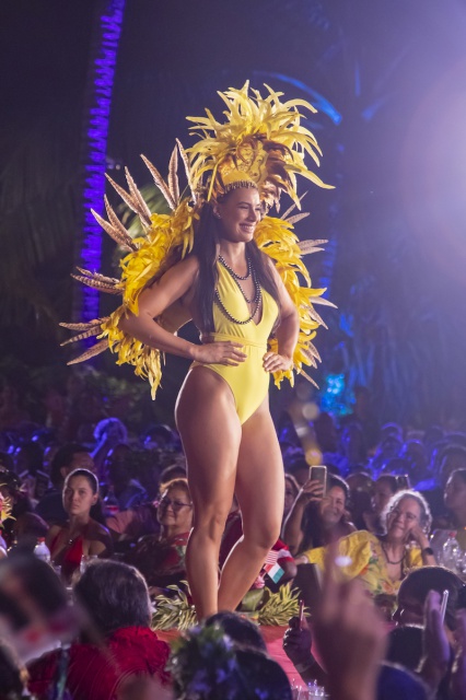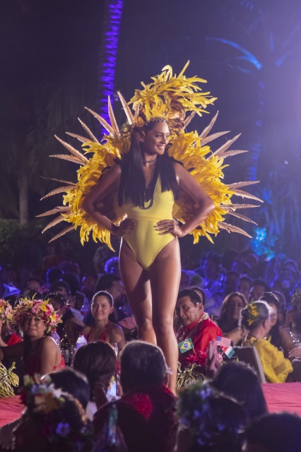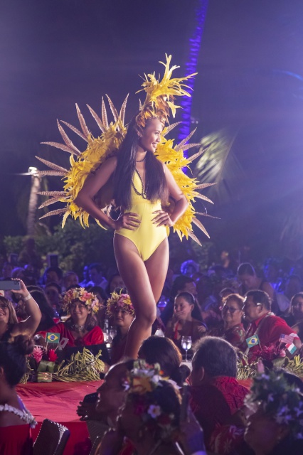 Embarquement à 19h45 destination l’Espagne, pour un premier passage inspiré du flamenco, Ole ! Retour à Tahiti avec un ‘aparima accompagné de Tumateata Buisson et Natalia Louvat, avant de redécoller pour le Brésil et le tant attendu passage en maillot de bain version carnaval de Rio. Entre ces différentes escales, les prestations de la troupe African Dance Tahiti et des élèves du Centre de danse de Vanessa Roche ont respectivement embarqué le public vers l’Afrique et la France. Et pour boucler ce tour du monde, direction le Japon, pour un ultime passage sur scène en tenues de soirée signées Gaëllef. Un tour du monde intensif bouclé en deux heures.
