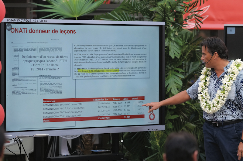Autre “petit” dossier en cours, la saisine de la Direction générale de l'économie numérique (DGEN) par Onati le 11 octobre dernier pour exiger que Vodafone respecte le cahier des charges de sa licence d'opérateur. Notamment sur son déploiement dans les îles. “La DGEN n'a pas donné suite”, rappelle Patrick Moux. “Peut-être parce qu'Onati non plus ne respecte pas ses cahiers des charges ?” Et l'intéressé de reprendre les propos du DG d'Onati dans sa conférence de presse de la veille, sur le raccordement de seulement “10 000 foyers à la fibre” depuis 2014. Alors que la convention de financement passée avec l'État pour subventionner l'installation de la fibre imposait 50 000 “abonnés raccordés” en dix ans. “Onati s'acharne sur Vodafone”, a voulu insister Patrick Moux, citant les recours sur la publicité comparative, la coupure de Tahiti Wifi, ou encore, donc, la coupure de l'itinérance. “Maintenant on contre-attaque.”