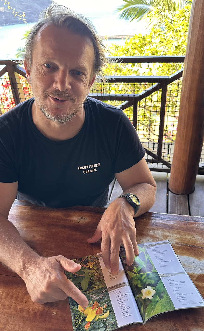 Jean-François Butaud, ingénieur forestier et docteur en chimie moléculaire diplômé de l’Université de la Polynésie française (UPF), connaît bien la flore marquisienne. Si bien qu’au Marquises, il est surnommé “Monsieur Santal”. Un surnom qui remonte à l’époque où il est arrivé à Nuku Hiva en 1998, pour travailler 16 mois au Service du développement durable dans le cadre d’un volontariat civil à l'aide technique (VCAT), une expérience suivie d’un mémoire de thèse de doctorat et de nombreux ouvrages consacrés à cette ressource fragile tant convoitée.