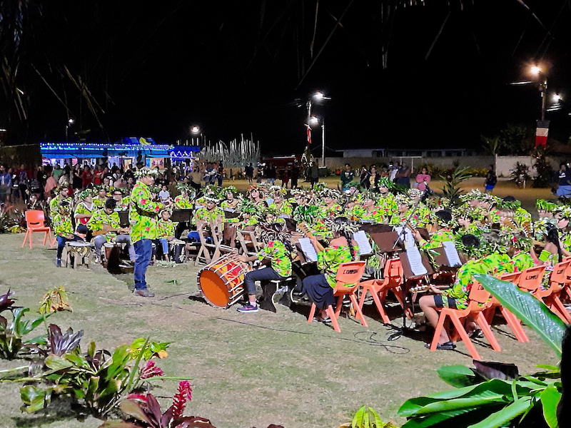 En revanche, la retraite au flambeau par les groupes de danse des trois villages a été maintenue même si les groupes de danses étaient limités en taille et que le feu d'artifice toujours apprécié des petits n'a pas eu lieu. Autre absence notable de ce Heiva, l’exposition d’artisanale et les concours de tressage ou encore celui du lever de pierres, sport traditionnel des Rurutu. Même si les prestations de danse des trois villages auront lieu dans le cours de la semaine, elles ne seront pas jugées. L’ensemble rend l’événement moins festif qu’auparavant, mais pas moins attendu par une population ayant soif de se retrouver après le vide social et culturel de 2020. Le public s’est déplacé pour les premiers événements comme le chant traditionnel, le spectacle des écoles de danse et de musique, le concours agricole et la préparation de poi taro, où le port de masque était quasi absent aux baraques. Insouciance quand tu nous tiens… Les enfants s’éclataient sur les toboggans, trampolines, jeux de pêche au canard, baby-foot et autres. Le Heiva à Rurutu, comme ailleurs, joue une rôle clé dans la transmission et le maintient des coutumes et de la langue. La participation d’une large tranche de la population, quel que soit l’âge ou le milieu social, en témoigne. Mais l’événement est aussi un moment important qui permet la jeunesse de l’ile de se défouler et de se retrouver après les efforts de l’année scolaire.