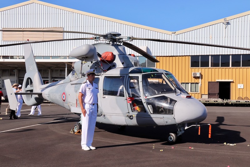La "cérémonie des couleurs" et le baptême de l'hélicoptère Dauphin N3+ de la frégate de surveillance Prairial, ont été organisés vendredi matin au groupement militaire aéronautique de Faa'a. La cérémonie a été présidée par le contre-amiral Geoffroy D'Andigné, en présence de nombreuses autorités civiles et militaires, élus et d'invités. Ce troisième hélicoptère Dauphin à être installé en Polynésie française viendra remplacer l'hélicoptère Alouette III sur le "détachement 34F Prairial", de son appellation militaire. Il participera ainsi aux missions de police des pêches et de surveillance maritime, aux missions militaires et de coopération dans le Pacifique, de l'Amérique latine jusqu'en Asie, ainsi qu'aux exercices majeurs comme Unitas en Amérique latine, Rimpac à Hawaii et Marara en Polynésie.