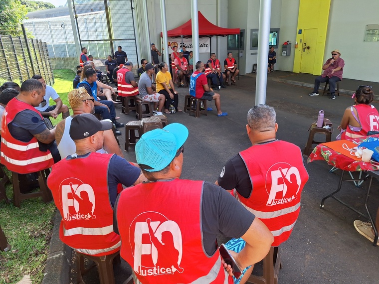 Quatrième manifestation au centre de détention de Papeari, ce mardi midi. À l’image du 24 avril, une soixantaine de membres du personnel s’est réunie devant la porte d’entrée principale.