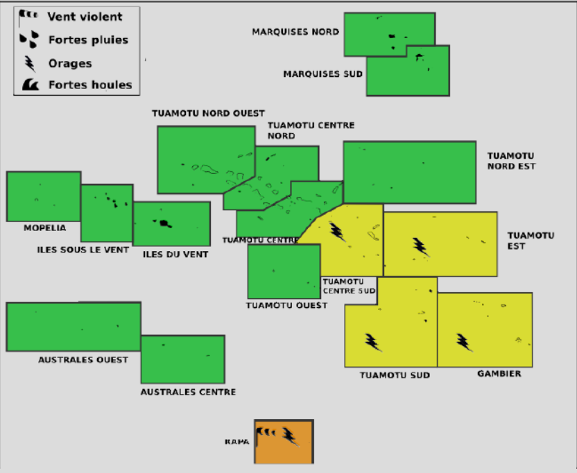 Tahiti le 22 mai 2023. Une dépression passe actuellement au-dessus de l’île de Rapa dans l’archipel des Australes. Météo France vient de placer l’île en vigilance orange générant averses orageuses et vents marqués. Ces vents forts atteignent en moyenne 70 km/h, mais avec des rafales montant jusqu'à 130 km/h.