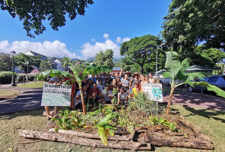Les jeunes du collectif "Extinction Rebellion Fenua" se sont donnés rendez-vous, samedi matin, devant l'assemblée de la Polynésie, avec à la main, pelles, sacs de terre, copeaux de bois et surtout plusieurs plants aromatiques, arbres fruitiers ou tout simplement plantes ornementales. Les militants ont ensuite installés une butte solidaire. Tuaratahi Lecaill explique que ce projet est né il y a quelques temps et qu'il a fallu attendre que certains plants grandissent pour le réaliser. L'objectif étant de "promouvoir l'agriculture et notre autonome alimentaire". Le jeune homme explique que le lieu choisi n'est pas anodin. Effectivement, ils ont plantés tout cela juste devant l'assemblée de la Polynésie pour que "les élus et le gouvernement soient sensibilisés et arrêtent d'entreprendre de grands travaux. Il faut se concentrer sur les ressources de la terre et surtout l'agriculture. Il faut nourrir la population et diminuer les exportations. Espérons que ce geste va éveiller les consciences et va aussi faire prendre conscience que nous avons tout ce qu'il faut".