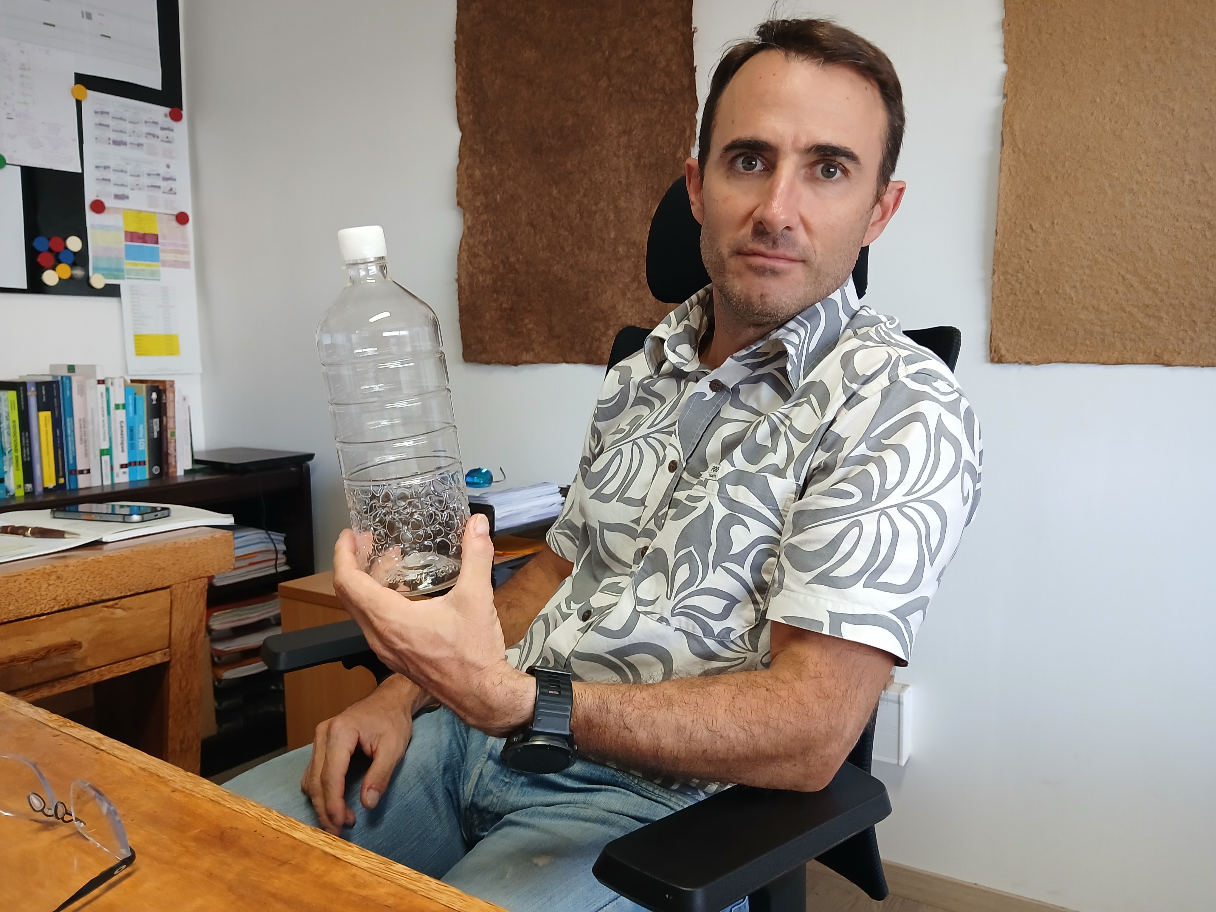 Il souhaite alors lui commander des bouteilles en achetant des “préformes – formes temporaires d'un matériau destiné à être modifié, NDLR – pour les souffler ici”, mais ce n'est pas possible, d'autant que “commander des bouteilles d'un litre remplies d'air, c'était une hérésie” environnementale. L'idée s'arrête là.