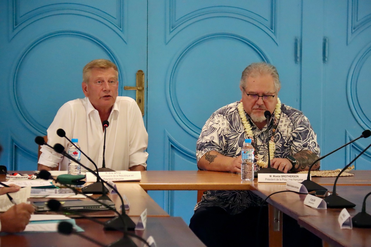 Lundi, le haut-commissaire de la République, Éric Spitz, et le président de la Polynésie française, Moetai Brotherson, ont coprésidé, au haut-commissariat, le comité de pilotage de la convention relative aux bâtiments publics pouvant servir d’abris de survie dans l’archipel des Tuamotu, afin de faire le bilan des travaux réalisés et d’établir la programmation de nouvelles opérations de construction dans le cadre du programme 2021-2025, dont l’enveloppe globale est de 6,038 milliards de francs d’investissements.