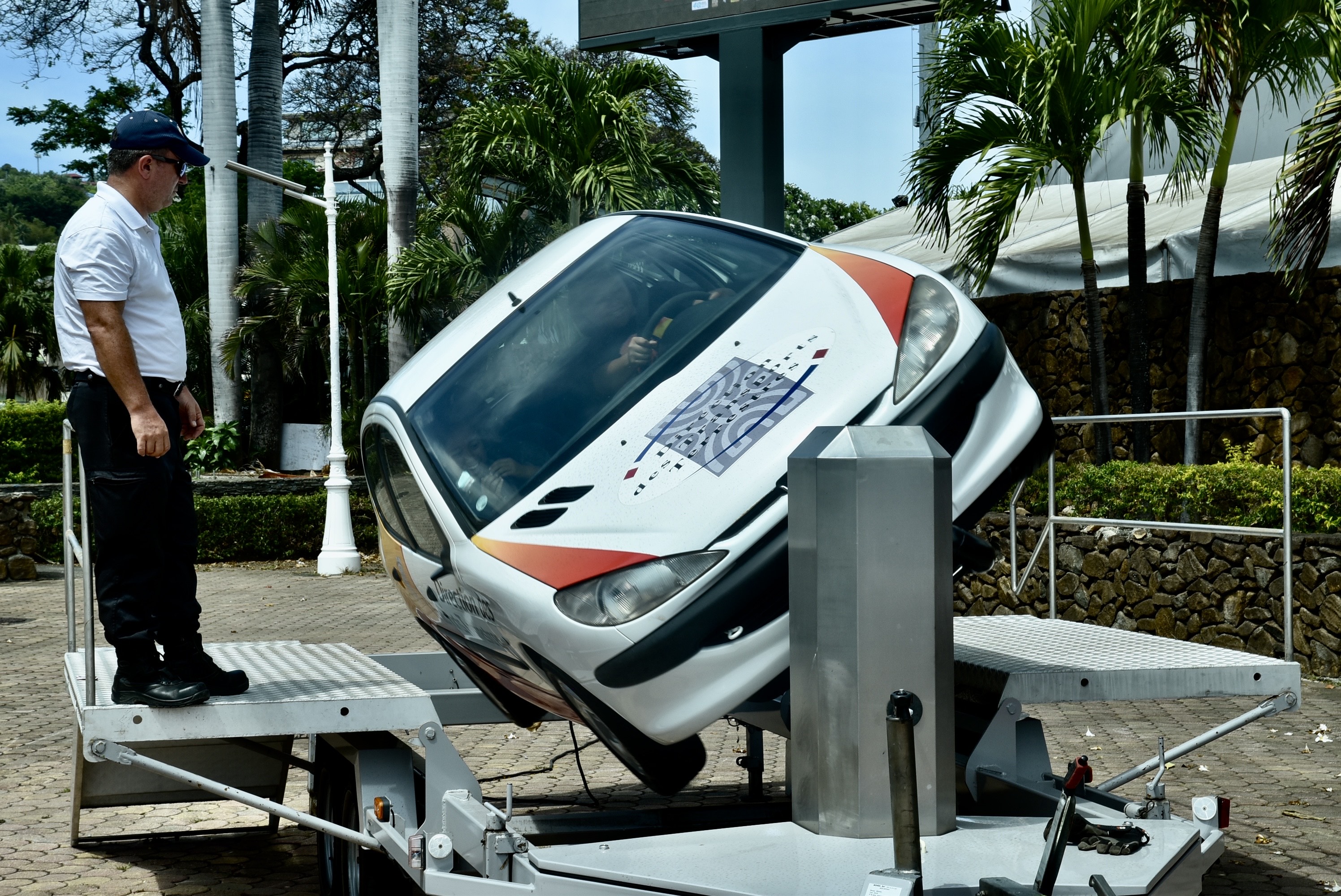 Un atelier de simulation de voiture qui fait des tonneaux animé par la Direction des transports terrestres, un stand de sensibilisation aux accidents animé par la gendarmerie, une piste cyclable pour apprendre le code de la route animé par la police nationale, les différents acteurs de la sécurité routière étaient réunis sur la place To’ata, ce jeudi, pour présenter leurs outils de sensibilisation aux Polynésiens. Après deux journées à travailler ensemble à l’occasion d’un séminaire organisé par le Pays et l’État, ils étaient donc encore réunis, pour leur plus grand bonheur.
