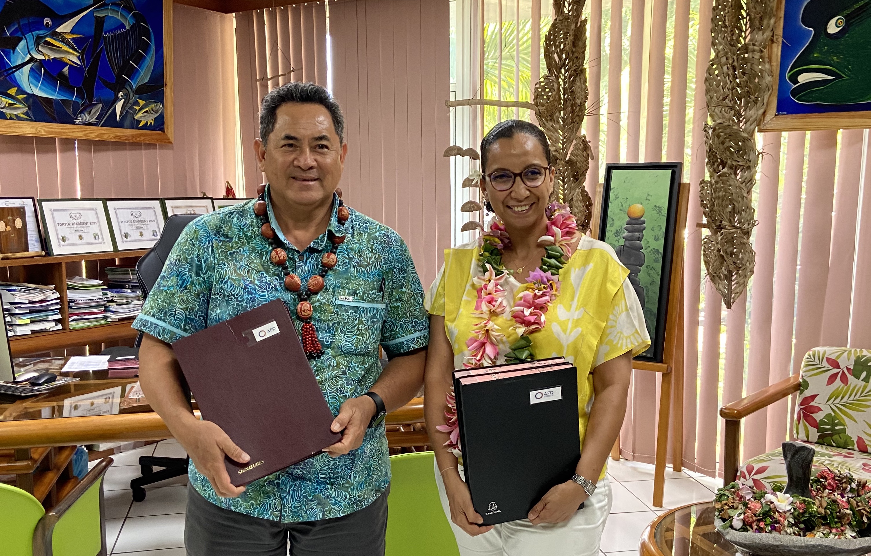 Jeudi 18 mai 2023. La commune de Punaauia et l’Agence française de développement (AFD) ont signé une convention de subvention pour le financement partiel d’une étude sur les mobilités durables sur la plaine littorale de la commune.