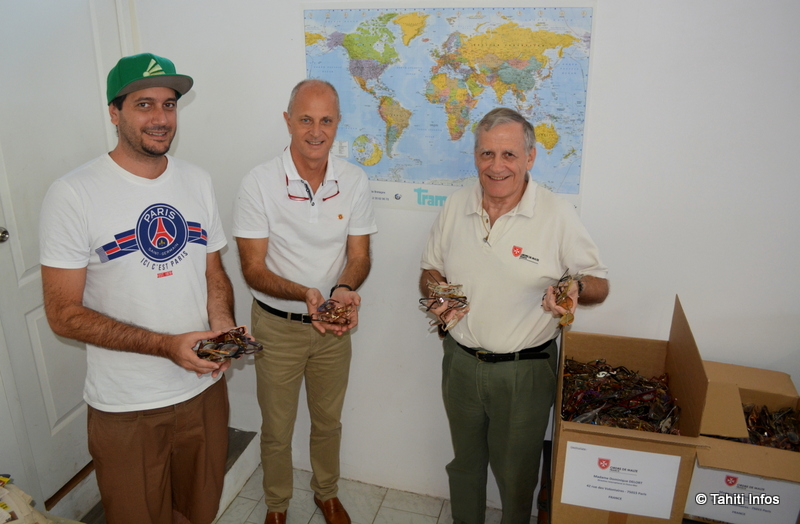 PAPEETE, le 27 juillet 2018 - L'Ordre de Malte a organisé une grande collecte de nos vieilles paires de lunettes depuis octobre dernier. Après 10 mois de collectes chez les opticiens, ophtalmologues, avec le soutien marqué de la DGEE et du collège de Arue, ce sont finalement 1100 paires qui ont été collectées.