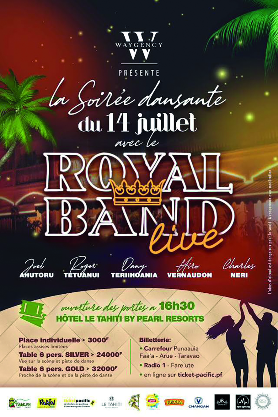 TAHITI, le 12 juillet 2023 - Il est né dans les années 1980 au cœur du fameux hôtel Royal Papeete. Le Royal Band, depuis, chante et joue le Tahiti d’antan. Pour le 14-Juillet l’orchestre anime une soirée dansante très attendue par tous les nostalgiques du Tahiti “belle époque”.
