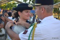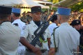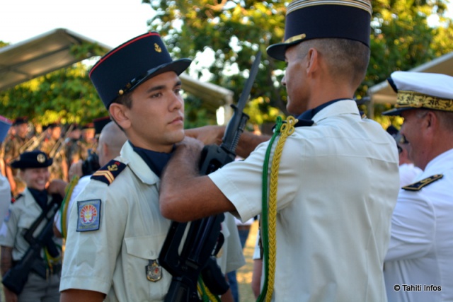 D'abord il a prononcé un discours pour saluer la carrière militaire du Capitaine Eric Dollé, officier supérieur adjoint du RIMaP-P qui va entamer sa reconvertion vers le civil. Puis, en signe de passage de flambeau entre les générations, il a procédé à la remise de leurs galons aux 15 jeunes réservistes Polynésiens qui ont réussi leur formation de sous-officier. Ils sont désormais sergents. Leurs familles étaient présentes et on sentait la grande émotion de tous ces jeunes militaires qui ont désormais charge d'âme et devront diriger leurs propres hommes avec toute la rigueur militaire qui leur a été inculquée.