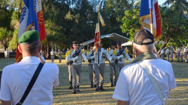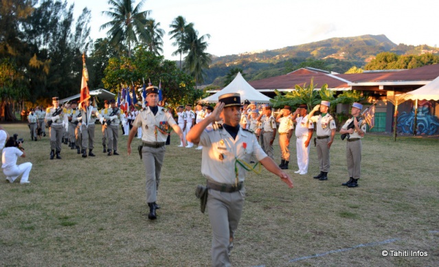 Vendredi soir, les jardins du Musée de Tahiti et des Îles ont résonné de musiques militaires, de la Marseillaise et du chant des Tamarii Volontaires. Les marsouins du Régiment d'Infanterie de Marine du Pacifique – Polynésie (RIMaP-P), les réservistes polynésiens et de nombreux officiers étaient rassemblées pour une série de cérémonies réglées au cordeau.
