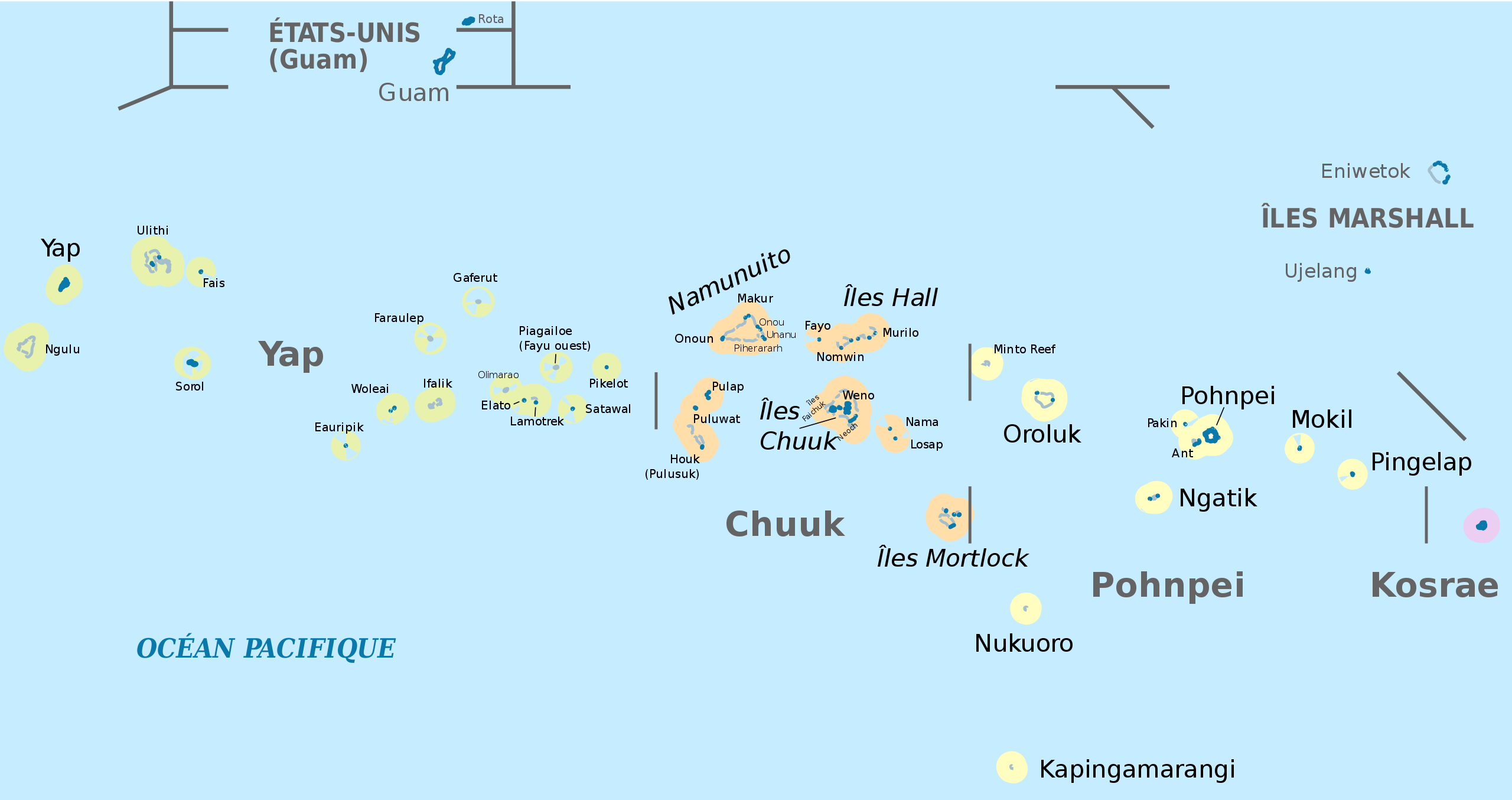 A l’époque, c’était la Grande-Bretagne, de fort loin il est vrai, qui surveillait cette région (il fallut attendre 1898 pour que les Espagnols en soient définitivement chassés). L’Angleterre ne se jeta pas sur cet archipel qu’elle laissa finalement aux Allemands ; ceux-ci en conservèrent la tutelle jusqu’en 1914. En 1941, les Japonais envahirent l’île dont ils furent chassés en 1944 par les Américains, la Micronésie ayant accédé à l’indépendance en 1986.