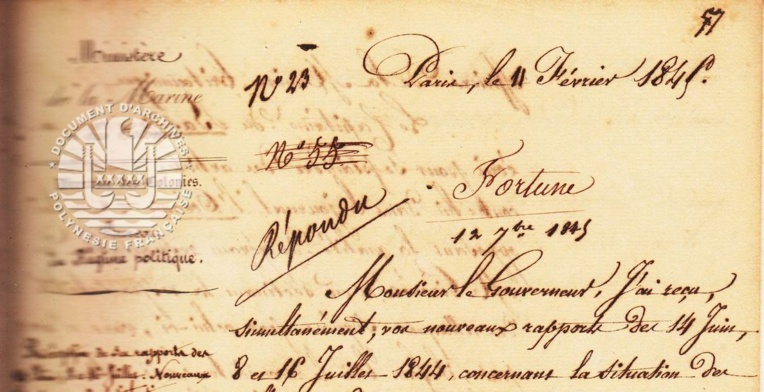 Mais de Ginoux n’en avait pas fini avec l’Océanie puisqu’en juillet 1846, il présenta un rapport choc de 232 pages à Guizot, le ministre des Affaires étrangères, rapport intitulé “Les Marquises, 1842-1846. Tahiti, 1836-1846, histoire des événements”.