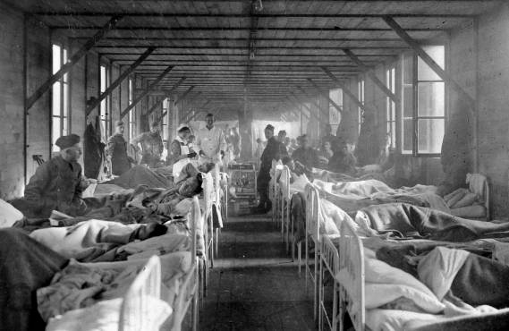 Une vue de l’hôpital militaire de Limoges en 1918 ; la grippe décima l’Europe avant de tuer plus d’un demi-million d’Américains. Ce n’est que fin 1918 qu’elle arriva à Tahiti.