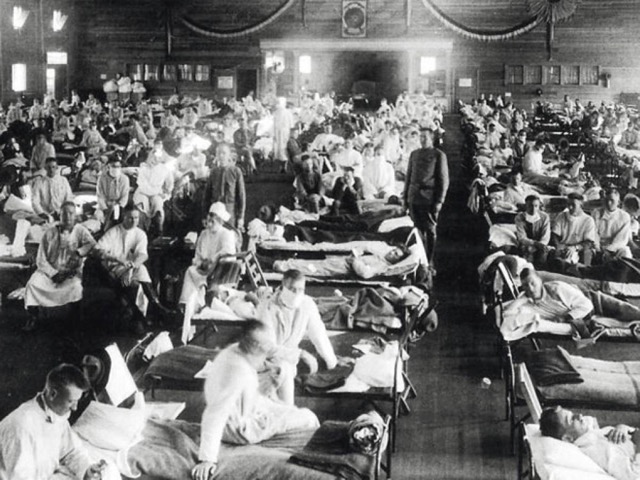 La grippe espagnole n’avait d’espagnol que le nom. On a longtemps cru que les premiers cas avérés étaient apparus aux Etats-Unis, le 4 mars 1918 dans le camp militaire de Fort Riley au Kansas. Un demi-millier de soldats devant être envoyés en France pour se battre contre les Allemands auraient été infectés et hospitalisés en quelques jours seulement. En réalité, le virus s’est manifesté pour la première fois en Europe en 1917. Cette année-là, des militaires français sont victimes d’une forte fièvre à Etaples-sur-Mer où ils s’entraînent. Ce sont sans doute des oiseaux migrateurs venus d’Asie qui ont amené le virus, car le camp était proche de la baie de Somme où nichaient les volatiles. En avril 1918, la grippe qui provoque des complications pulmonaires mortelles s’installe dans les tranchées de Villers-sur- Coudun. A partir de là, la maladie, très contagieuse, va se répandre, d’abord dans les tranchées, sur le front, où ces soldats ont été envoyés puis partout en France, en Europe et aux Etats-Unis.