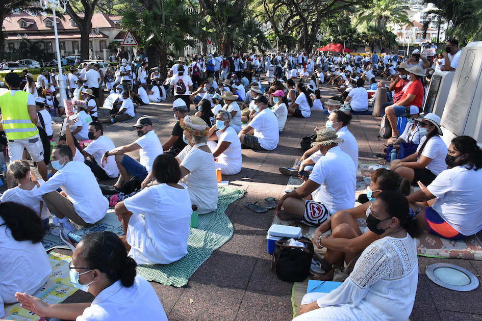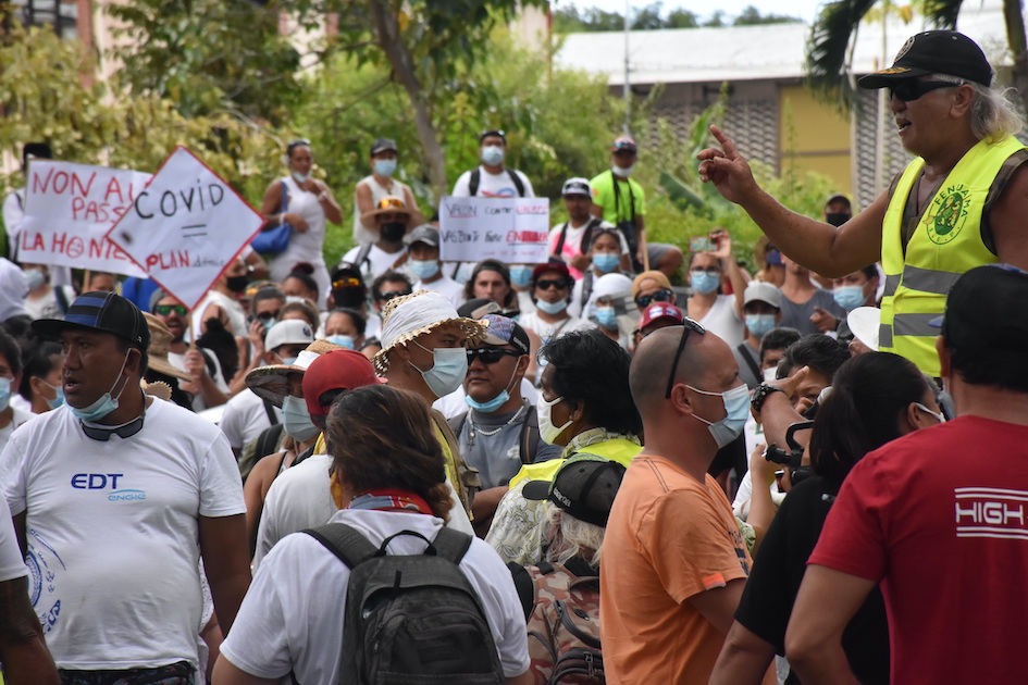 Tahiti, le 18 septembre 2021 – Plus de 2500 personnes ont manifesté devant la présidence et le haut-commissariat samedi à l’appel du collectif citoyen Te ora o te fenua, pour demander l’abrogation de la loi du 23 août sur l’obligation vaccinale. Un mouvement protéiforme et très critique à l’égard de la gestion de la crise sanitaire par les autorités publiques.