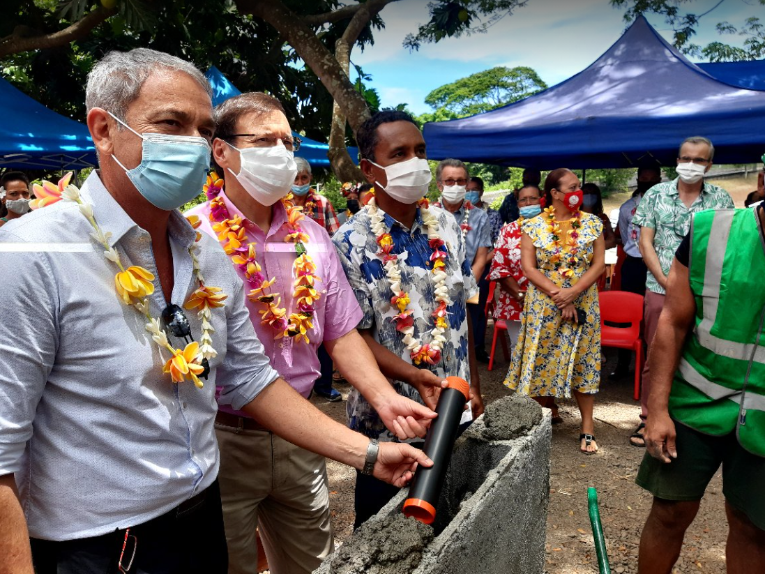 Tahiti, le 28 janvier 2021 - La pose de la première pierre du futur pôle de recherche, jeudi, à l’UPF, marque le début d’une nouvelle ère pour la recherche et l’innovation. Cofinancé par l’État, le Pays et l’UPF à hauteur de 1,2 milliard de Fcfp, le nouveau bâtiment permettra de doubler les surfaces de laboratoires. De quoi rassembler tous les chercheurs au même endroit et libérer de l’espace pour les étudiants.