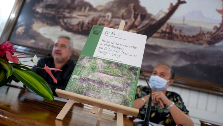 Tahiti, le 26 avril 2021 - Après 14 années de “silence éditorial”, la 6e édition du Dossier d’archéologie polynésienne permet de restituer au grand public le bilan des fouilles entre 2005 et 2015. Dix ans de recherches pour mieux “comprendre notre histoire”, soit l’équivalent de 85 opérations archéologiques sur toute la Polynésie. Si la crise du Covid a mis un coup de frein aux fouilles archéologiques et à la venue de chercheurs, elle a mis un coup d’accélérateur au bouclage du dossier d’archéologie polynésienne. Après 14 années de “silence éditorial”, le voici, fraîchement sorti de l’imprimante en 500 exemplaires et fièrement présenté aux médias hier à l’occasion d’une conférence de presse à la présidence. Après “cette très longue pause” il était temps de “diffuser la restitution des travaux au plus grand nombre” introduit le ministre de la Culture, Heremoana Maamaatuaiahutapu.