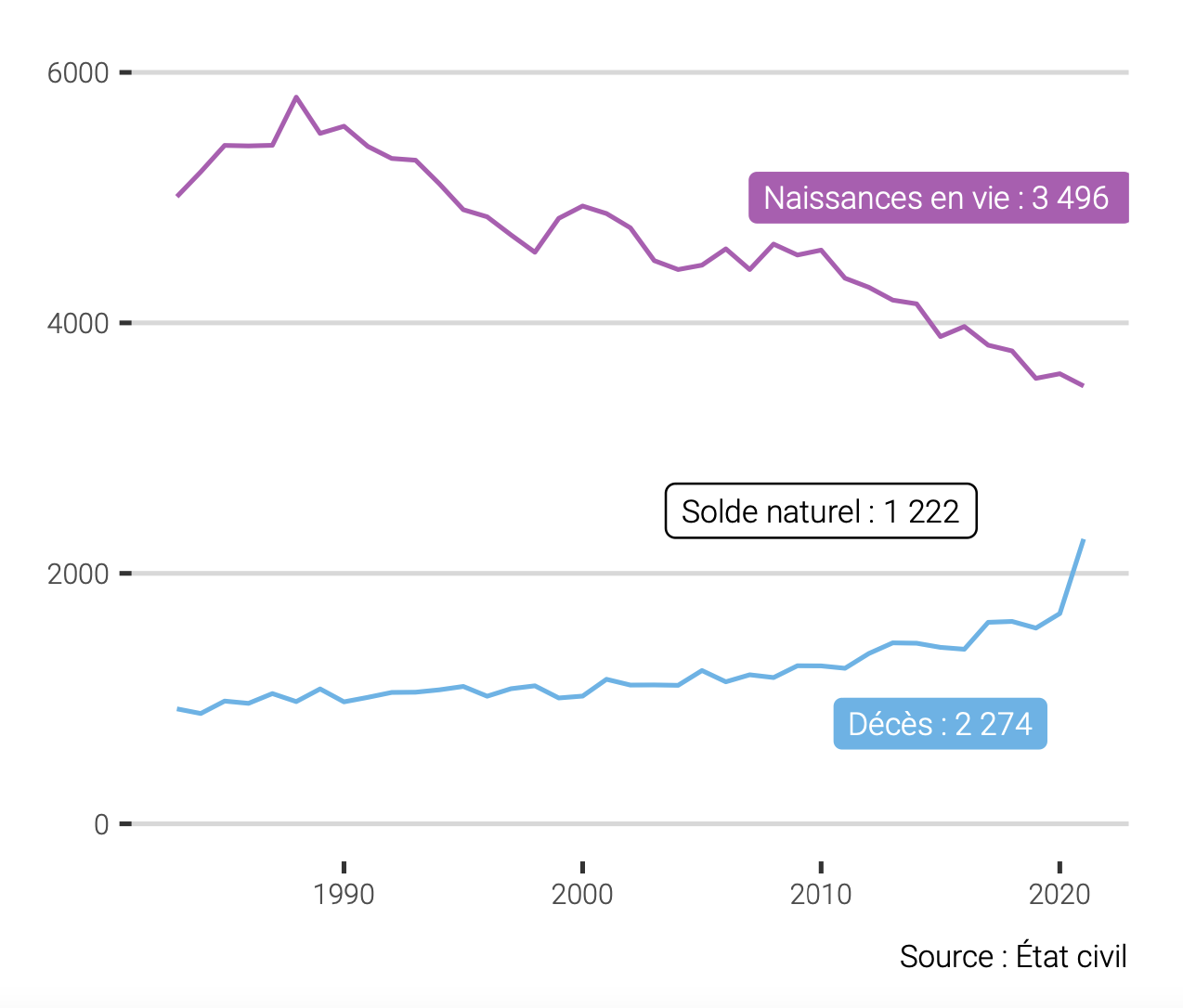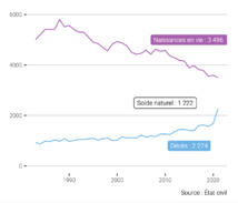 Le dernier bilan annuel de la démographie polynésienne a été publié vendredi par l'Institut de la statistique en Polynésie française (ISPF). Au 31 décembre 2021, la population polynésienne était estimée à 279 550 personnes. Soit 250 de plus qu'en 2020. Une croissance de la population qui ralentit depuis la fin des années 1980, et de façon encore plus marquée en 2021 en raison de la crise Covid. En effet, la natalité a continué à diminuer sur un rythme constant avec 3 496 naissances sur l'année, contre un pic à près de 6 000 il y a 30 ans. Mais surtout, la mortalité a bondi de façon exceptionnelle avec le Covid-19 pour passer au-dessus de la barre des 2 000 morts par an. À noter enfin que le solde migratoire –différence entre le nombre de personnes entrées sur le territoire et le nombre de personnes sorties– est déficitaire de 1 000 individus en 2021.