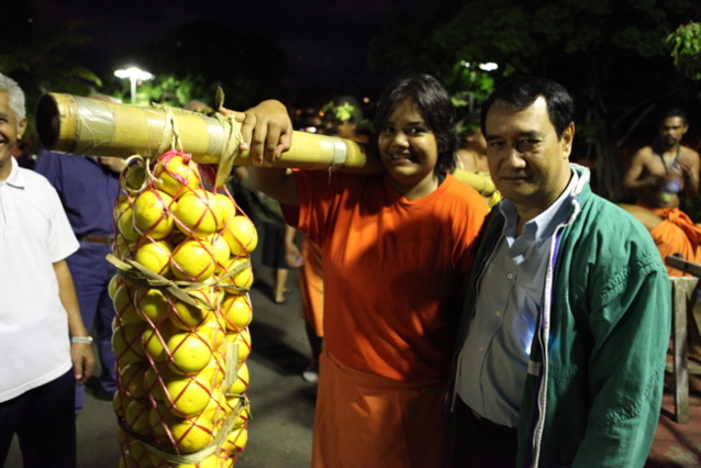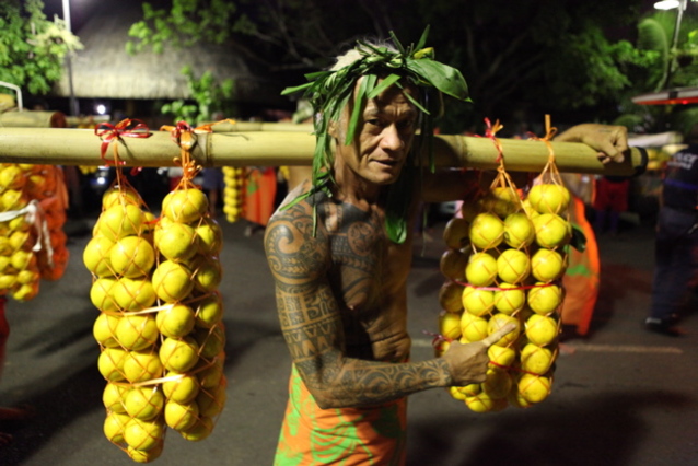 « J’ai demandé à ce que les porteurs d’oranges viennent défiler aussi à Faa’a pour le Président du Pays et pour le Maire de Faa’a aussi, ils sont contents, ils sont venus quand même en masse, normalement il y a une cinquantaine de porteurs d’orange, là ils sont venus à trente, j’en suis heureuse. »
