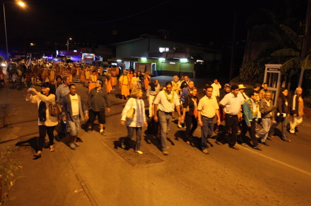 Les porteurs d’oranges de Punaauia sont venus pour venir participer à une marche de la mairie de Faa’a jusqu’à la stèle de Tavararo. Cette marche n’a pas réuni énormément de monde au niveau de la population, elle se voulait certainement symbolique.