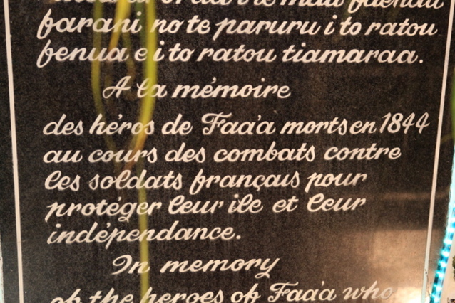 Le parti politique actuellement au pouvoir, le Tavini, en cette date commémorative de l’autonomie, a souhaité rendre hommage aux tahitiens ayant perdu leur vie lors de la guerre franco-tahitienne.