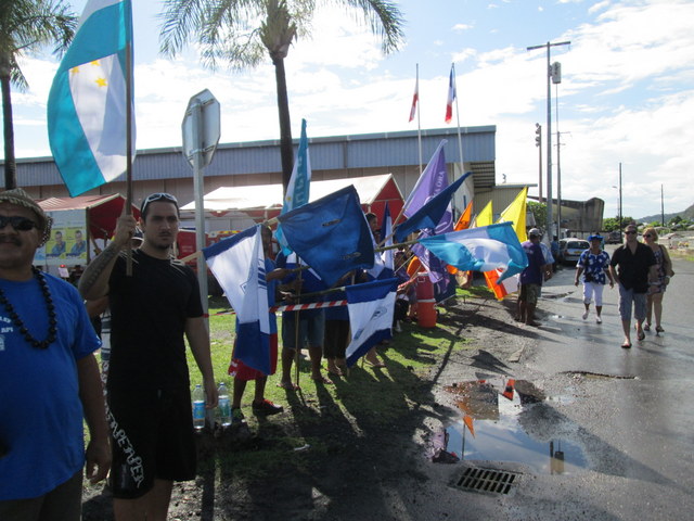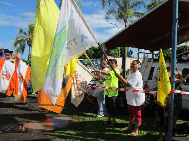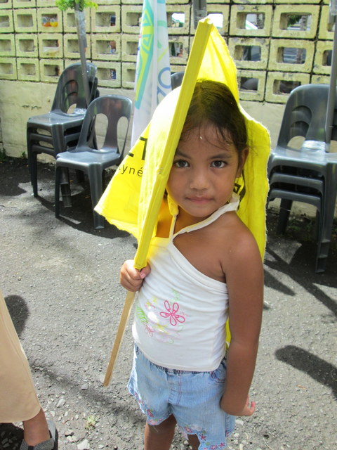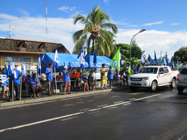 Dans la capitale Papeete, dont le maire Michel Buillard est candidat sur la liste de Gaston Flosse, une centaine de militants d'Oscar Temaru se sont massés à l'entrée de l'école où se déroulent les opérations de vote, drapeaux blanc et bleu ciel en main.