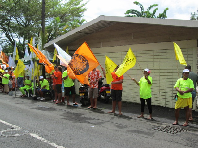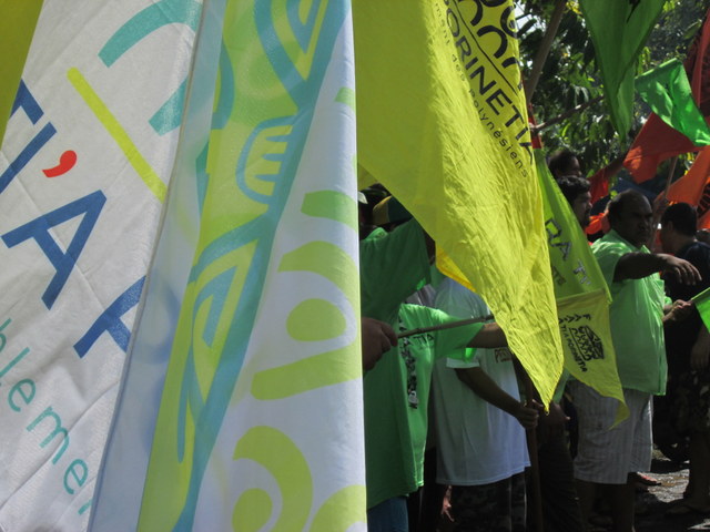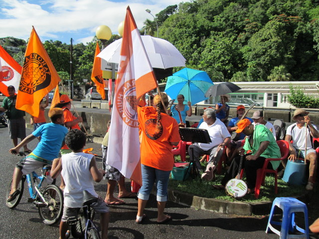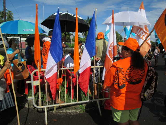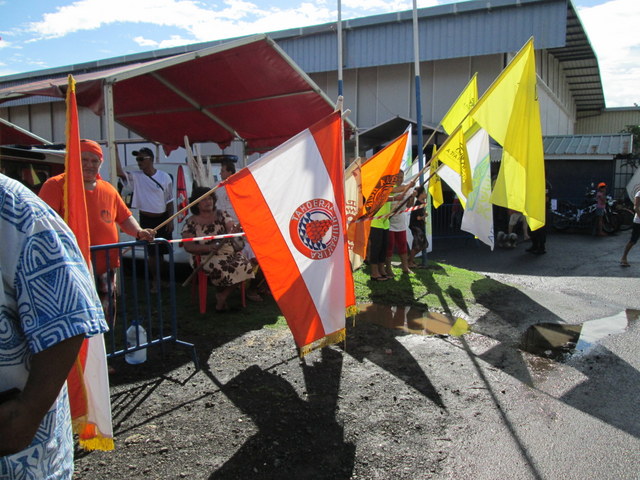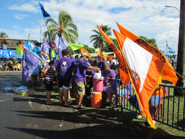 En miroir, à Faa'a, le fief d'Oscar Temaru, les militants de Gaston Flosse étaient aussi là, mais plus épars, en orange.