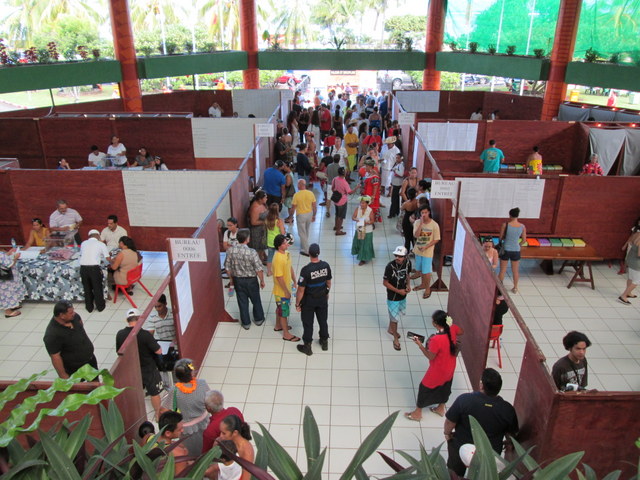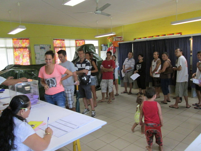 PAPEETE, le 21 avril 2013: Le coup d'envoi du premier tour a été donné ce matin à 8 heures. La mobilisation n'était pas à son comble en début de matinée, mais les bureaux ont commencé à se remplir vers 10 heures du matin. A 12 heures, le Haut-commissariat annonce un taux de participation de 34.63% pour l'ensemble de la Polynésie française. En 2008, les élections territoriales avaient mobilisé 33.07 % des électeurs à la même heure