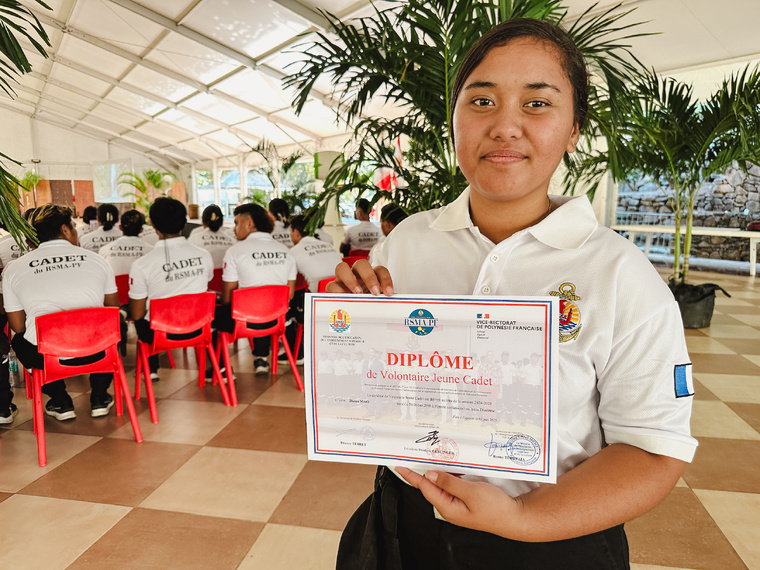 Ce lundi, 35 lycéens, tous âgés de 16 à 18 ans, ont reçu leur diplôme de Volontaire jeune cadet des mains du président de la Polynésie française, Moetai Brotherson, et du ministre de l'Éducation, Ronny Teriipaia. Un dispositif proposé par le Régiment du Service Militaire Adapté de Polynésie française (RSMA-Pf), le vice-rectorat et le ministère de l'Éducation afin de soutenir les élèves issus des familles défavorisées et/ou en situation de décrochage scolaire. “La mise en place de ce dispositif, on le voit aujourd'hui, est une réussite”, se félicite Ronny Teriipaia, ministre de l'Éducation. “Nous avons une trentaine de diplômés et c'est très encourageant. Et c'est d'ailleurs la raison pour laquelle nous avons signé aujourd'hui un nouveau protocole de partenariat avec l'ensemble des acteurs concernés pour l'année scolaire prochaine.”