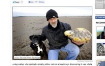 LONDRES, 31 jan 2013 (AFP) - Un Britannique qui a trouvé sur une plage un étrange rocher jaunâtre et odorant, s'est vu offrir 50.000 euros par un acheteur français pour ce qui semble être du "vomi de baleine rare", autrement appelé ambre grise, très prisée en parfumerie, a rapporté la BBC jeudi.