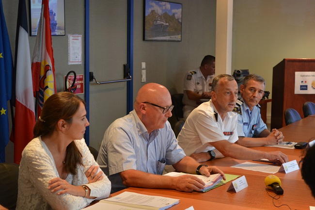 "A partir du Cefim, le centre de fusion d'information maritime que nous avons mis en place avec la douane et la gendarmerie, nous faisons un travail permanent de surveillance de la ZEE, avec notre stratégie de surveillance globale. A partir de la connaissance de la ZEE, de ce qui rentre et ce qui en sort, on évite d'avoir des trous noirs, c'est-à-dire des endroits autour de la ZEE pour lesquels on ne connait rien. A partir des informations du Cefim et des échanges avec nos partenaires de la région, nous ciblons un certain nombre de bâtiments que nous suivons de manière plus particulière. La lutte contre les trafics et le fait de garantir que dans la zone économique exclusive de la Polynésie française, ils ne s'installent pas, ça c'est mon job de tous les jours".