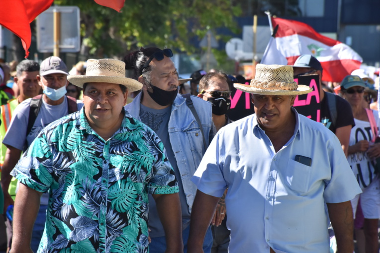 Parmi les manifestants on retrouvait notamment le président de l'Eglise protestante mā'ohi, François Pihaatae. A ses côtés également des leaders syndicaux tels que Atonia Teriinohorai, de O Oe To Oe Rima, Mahinui Temarii, de la Fédération des syndicats de la manutention ou encore le vice-président de l'association Moruroa e tatou, Mitema Tapati.
