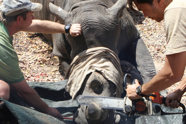 Plusieurs éleveurs en Afrique du Sud pratiquent régulièrement cette procédure et stockent la corne en attendant une autorisation du commerce international, actuellement interdit.