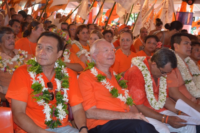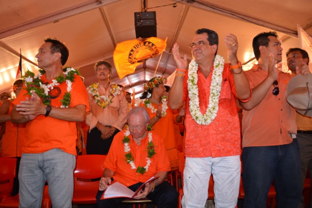 La liste complète des 73 candidats (57 titulaires et 16 suppléants) a été dévoilée et présentée aux militants, elle porte comme convenu Gaston Flosse en tête de liste. A l’occasion de son discours comme candidat tête de liste du parti orange, le sénateur Gaston Flosse a une nouvelle fois intronisé le député Edouard Fritch comme son successeur à la tête du Tahoeraa Huiraatira. Gaston Flosse a également révélé quelques aspects de son programme pour ces élections territoriales qui comprendra diverses étapes. Les années 2013-2014 seraient consacrées aux actions d’urgence ; de 2015 à 2018 il s’agirait de consolider la croissance retrouvée par de grands investissements ; les années 2018 à 2025 permettraient d’installer la Polynésie française dans un développement durable.