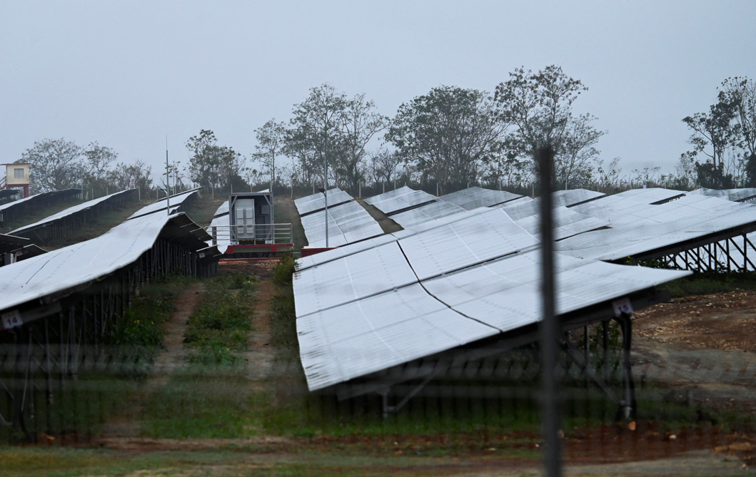 Cienfuegos, Cuba | AFP | vendredi 04/04/2025 - Non loin des ruines d'une centrale nucléaire jamais achevée, des travailleurs s'activent pour installer 44.000 panneaux solaires à Cienfuegos, dans le centre de Cuba. L'île cherche à réduire sa dépendance aux combustibles fossiles pour tenter de surmonter sa crise énergétique.