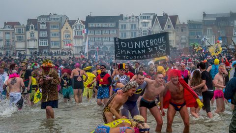 Pour beaucoup des baigneurs, cette trempette sert "d'entraînement" au célèbre carnaval de Dunkerque, l'un des principaux de France