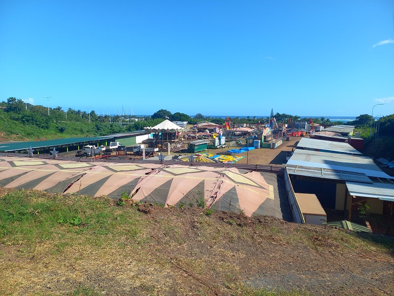Tahiti, le 26 mai 2025 - Les forains du site Outumaoro à Punaauia finalisent la construction de leurs baraques. L’association a annoncé une ouverture le 30 mai avec un feu d’artifices tiré vers 21 heures. Le lancement dépendra des conclusions de la commission de sécurité prévue cette fin de semaine. La loterie Tamara, elle, attend toujours son agrément.
