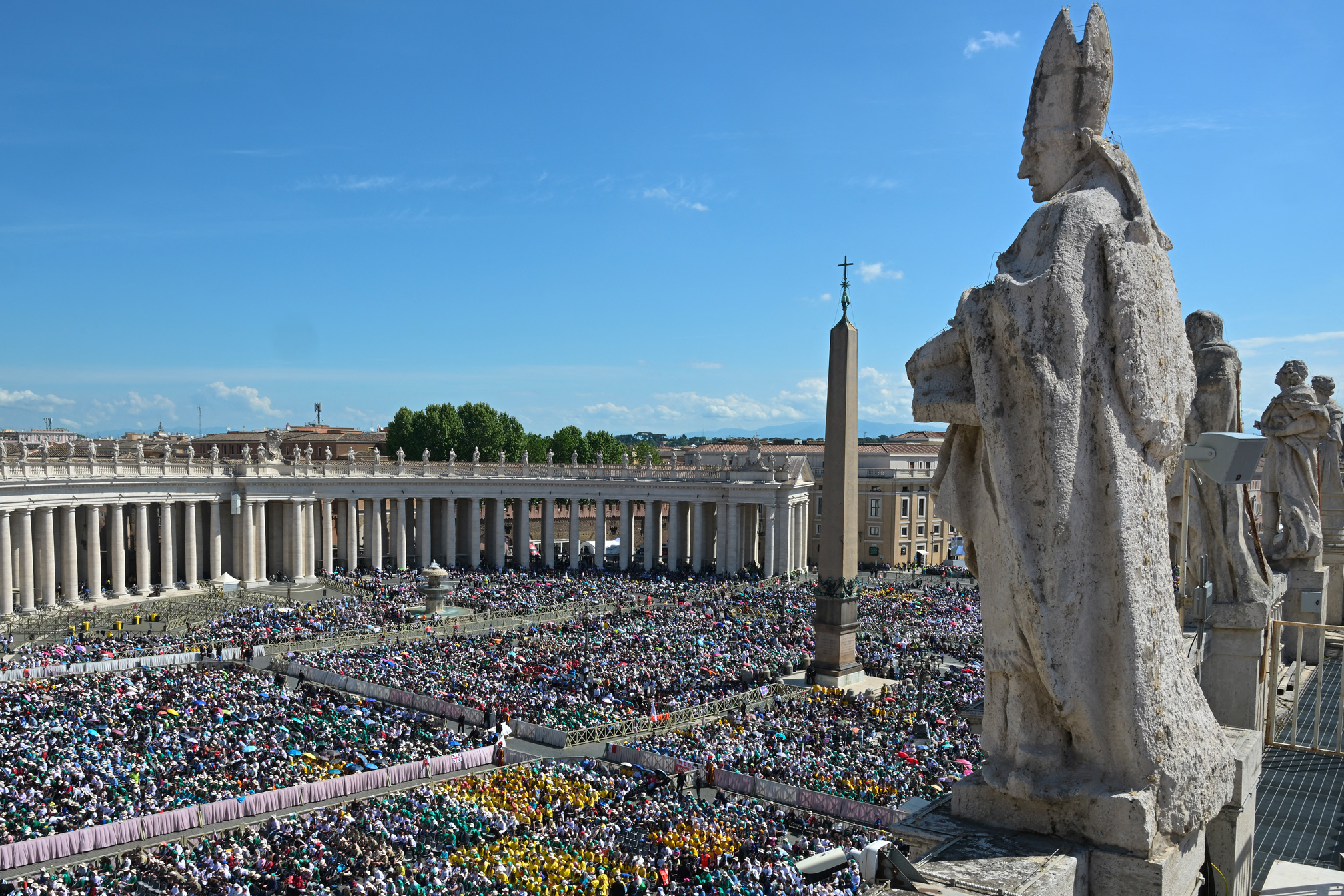 "Vous venez de partout: de tous les diocèses d'Italie, d'Europe, des États-Unis, d'Amérique latine, d'Afrique, d'Asie, des Émirats arabes... Avec vous, le monde entier est vraiment présent!", leur a lancé dans son homélie le cardinal Parolin, ex-numéro deux du Vatican, sous les applaudissements de la foule.